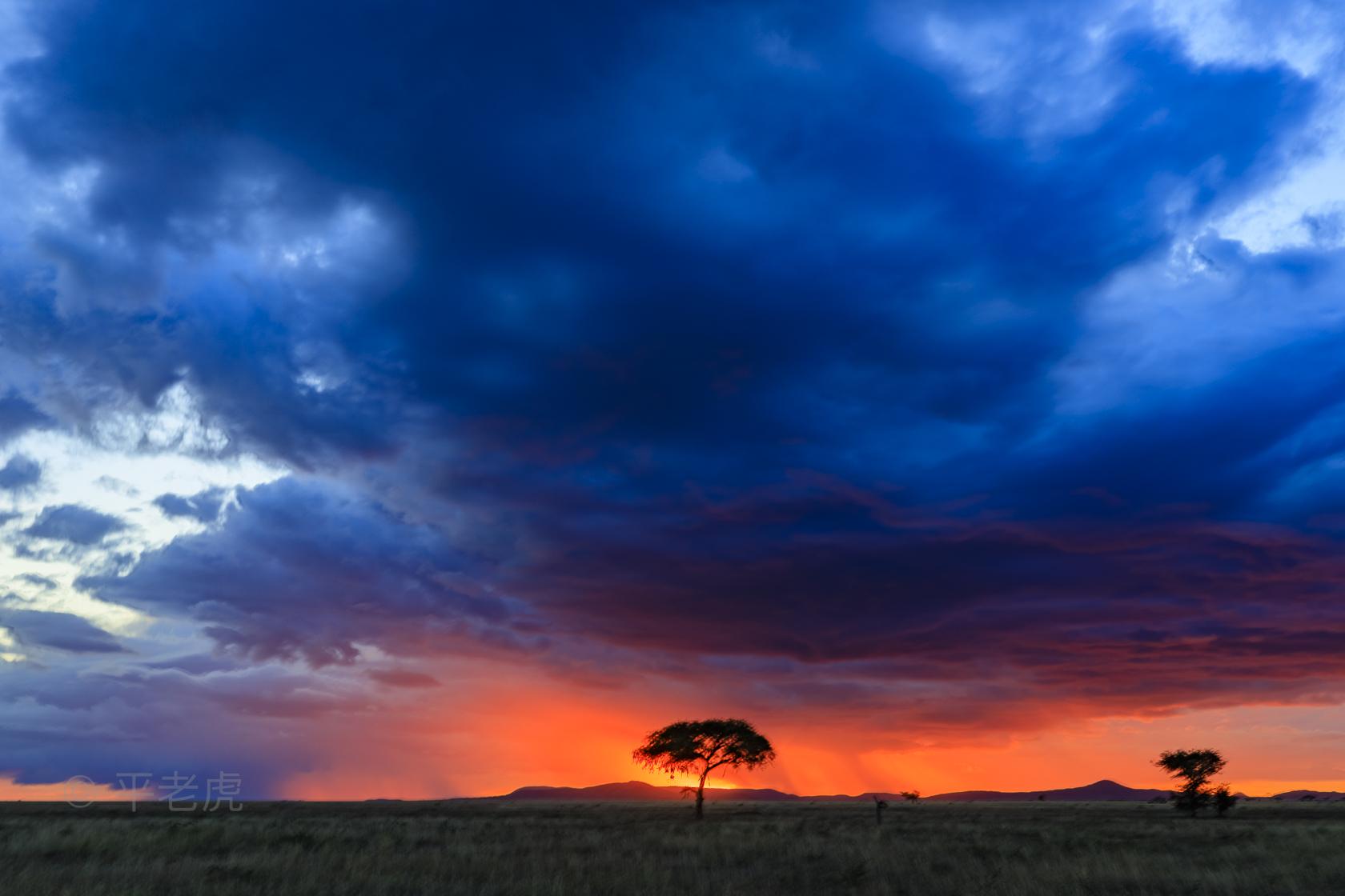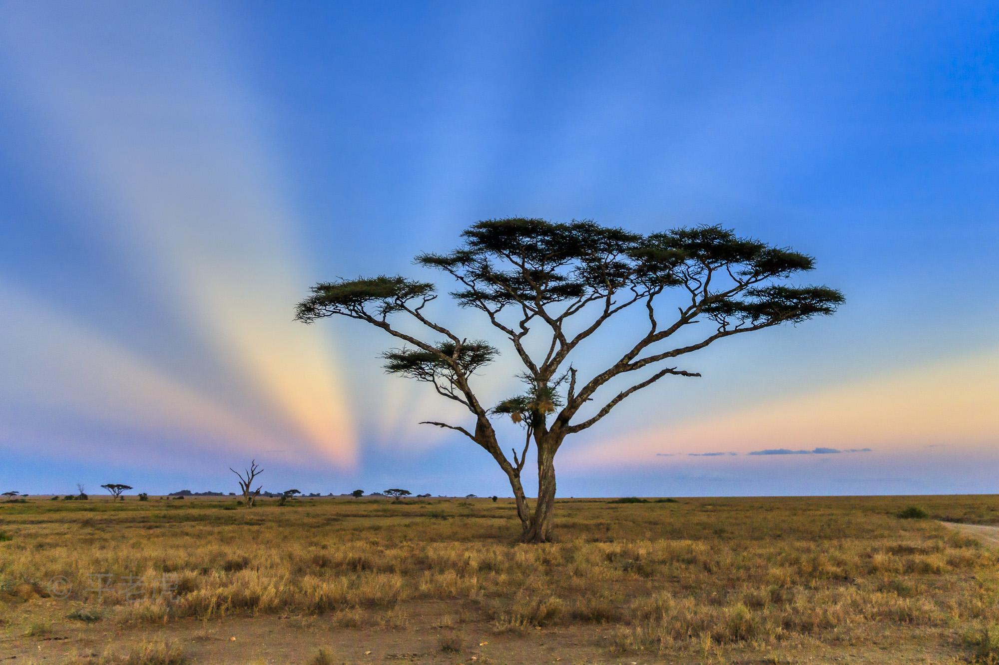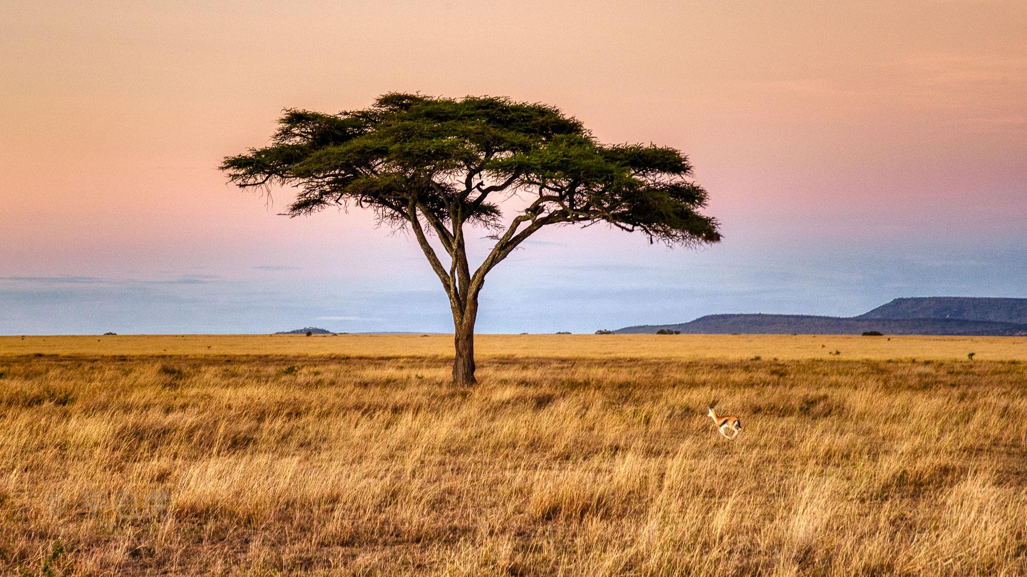 楼上美景中,暮色的天使光、青白路很美,但下图中,即便有了跑过的汤姆逊瞪羚,就更意欲思了