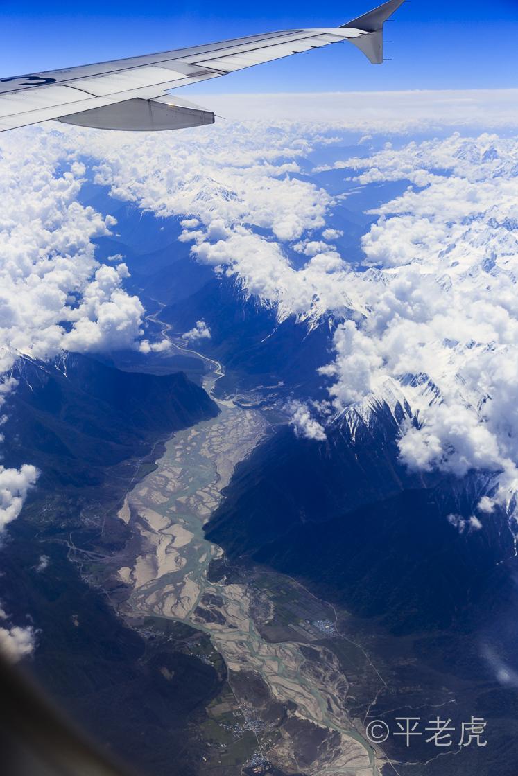 国际航班在怒江的5000多米高的昆仑山滑翔的情景非常斑斓、实在世界!