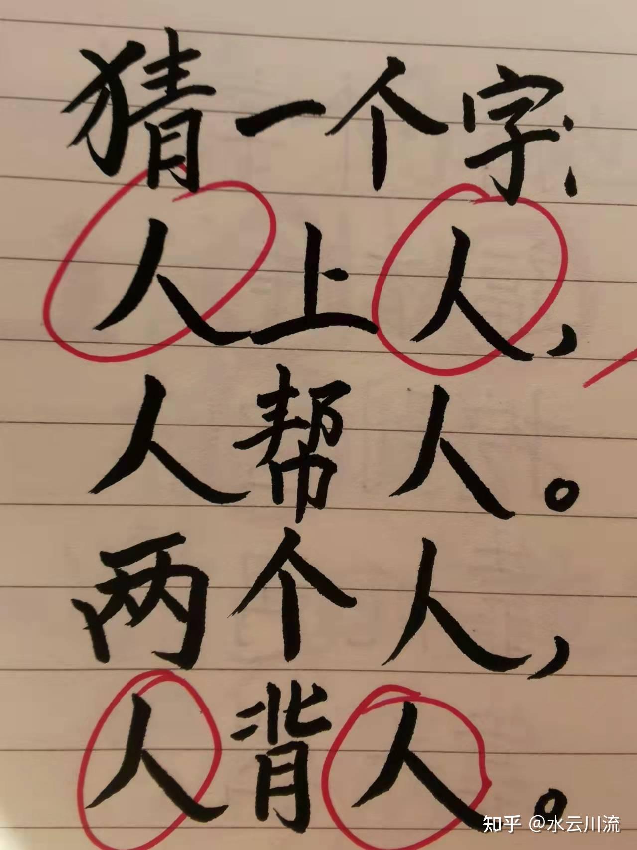 55、猜谜语:写一字,一万六千痕。细细看,就三人。猜两个字。尺度谜底(及)