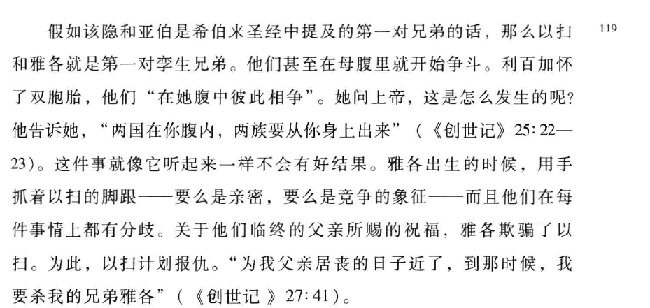 兄弟相杀的起源以至能够逃溯到亚伯与该隐的故事,以及以扫和雅各的故事。