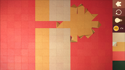 《神之折纸》是款益智休闲游戏;简单的几种颜色在纸张上勾画出各类图案,玩家所需要的就是把触眼所及的所有都翻转成统一个颜色,在规定步数内完成即可通关。虽音乐轻柔舒缓、配色清爽,难度可不容小觑。