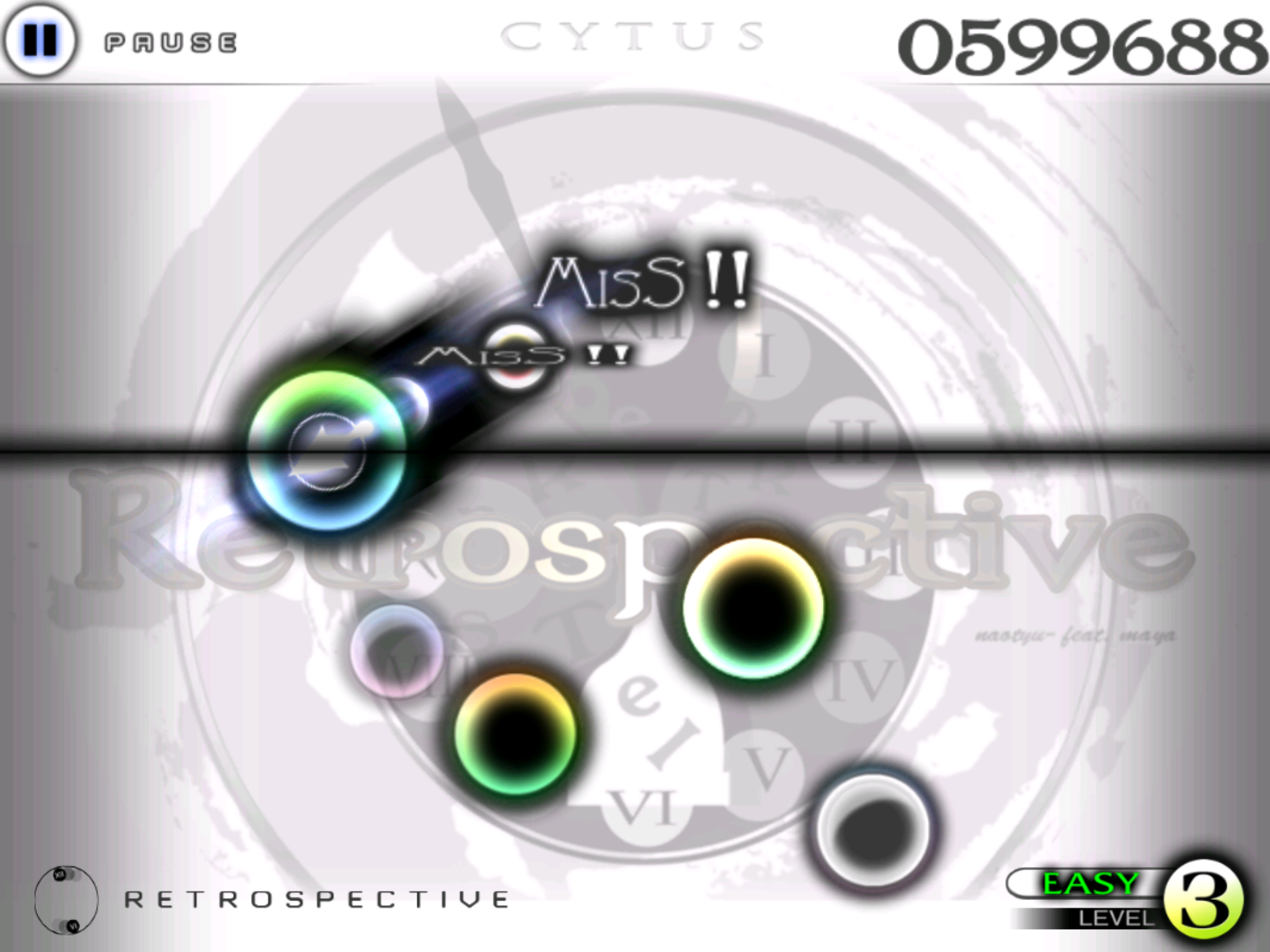 《Cytus》是款点触式音乐游戏;当上下挪动的扫描线抵达时,通过点击、滑动等体例触摸音符来获得分数。超现实科技感的画面,音乐很燃、充满将来感。即使是easy也颇具难度,对眼和手的协调才能有必然的要求。