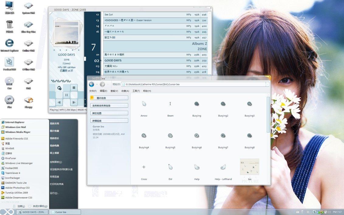 如下图,主题、图标、鼠标、Foobar2000都是同一的气概。那里的展现者自己就是美化资本的造做者(极限论坛的人应该认得她),图示的美化资本都是本身做的(出处Catherine - R5 by dreamxis on DeviantArt)。