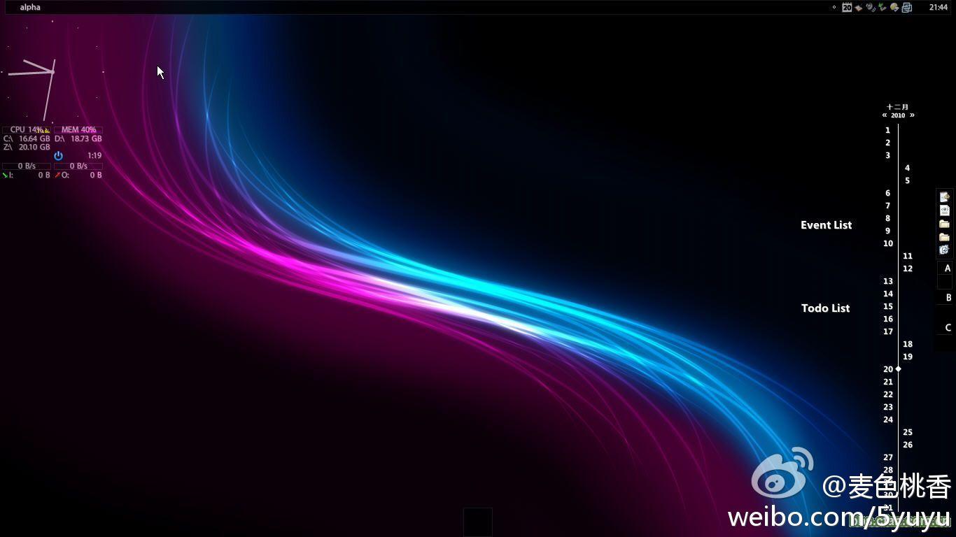 2.1、桌面定造东西——为桌面供给各色各样的饰件,除了美化感化外,还起到展现系统信息、法式启动、音乐控造之类的功用,兼具美妙和适用。