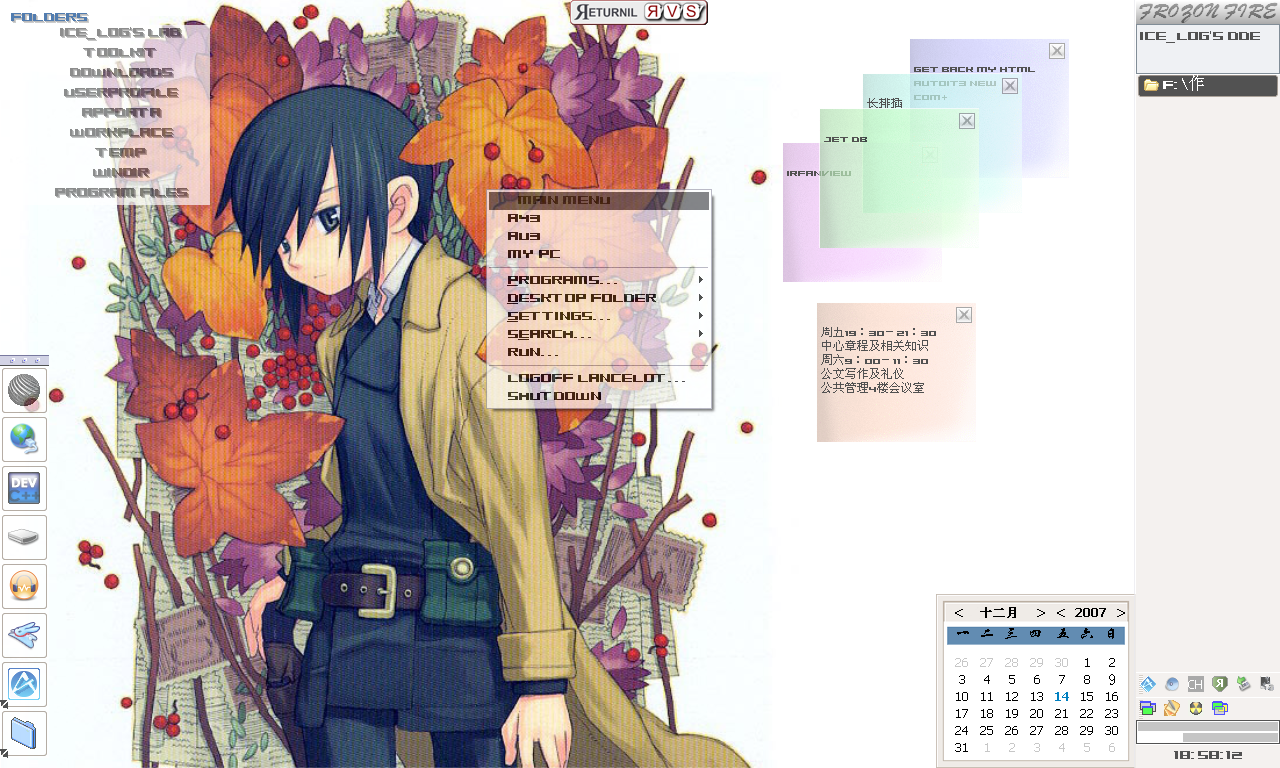 鱼鱼桌面秀(xdeskshow,后来用过Fishdesk那个英文名)曾经是国内相当流行的桌面美化东西,极限论坛有良多美化资本。不外,那软件越来越地痞,被良多人放弃,而其做者则退出软件团队,又去开发了酷鱼桌面(见极限此链接)。