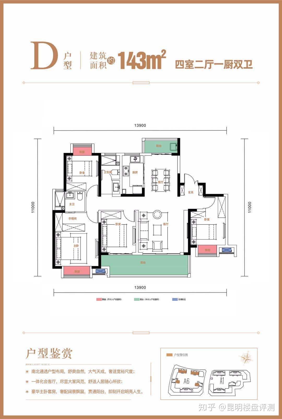 面积:端户143㎡,四房两厅两卫。