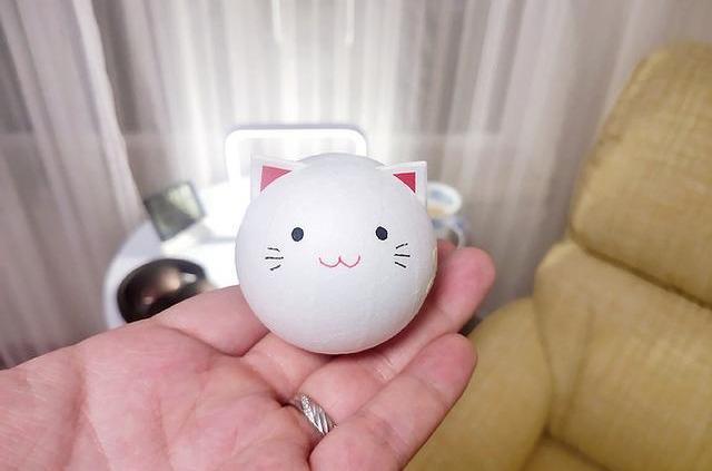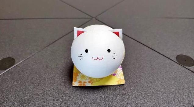 和纸猫咪的底部配有小块重物,能使它像不到位一样,推过之后也不会倒下,摇头晃脑的样子很心爱。