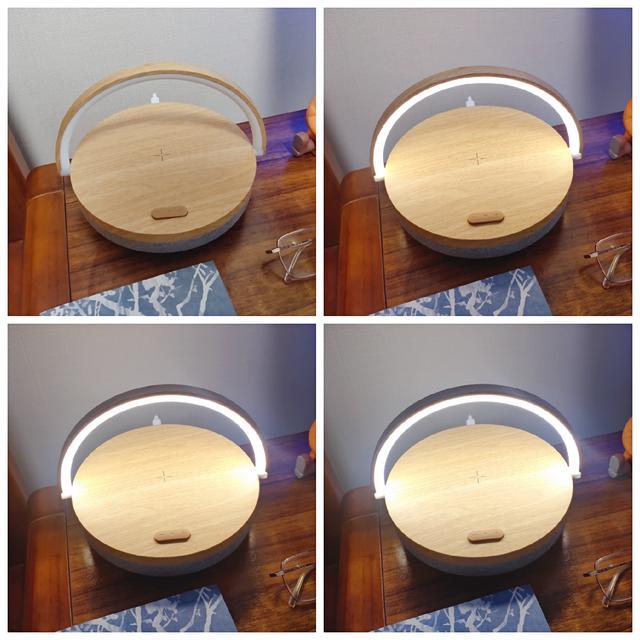 别的最让我心水的一点,那个台灯中间部门集成了QI无线充电,把撑持无线充电的手机放到中间的面板十字处,就能将手机停止无线充电啦!