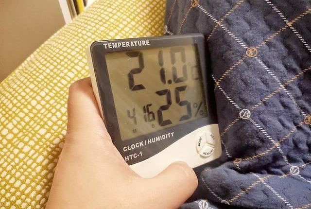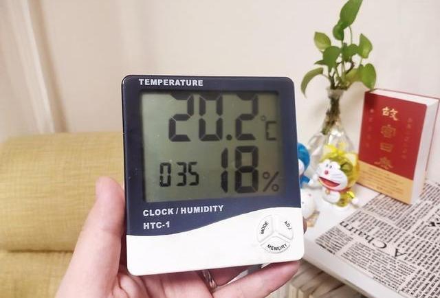 自带电子时钟的温湿度计,丈量数值还算准确,提醒本身气候太干了就赶紧翻开加湿器。