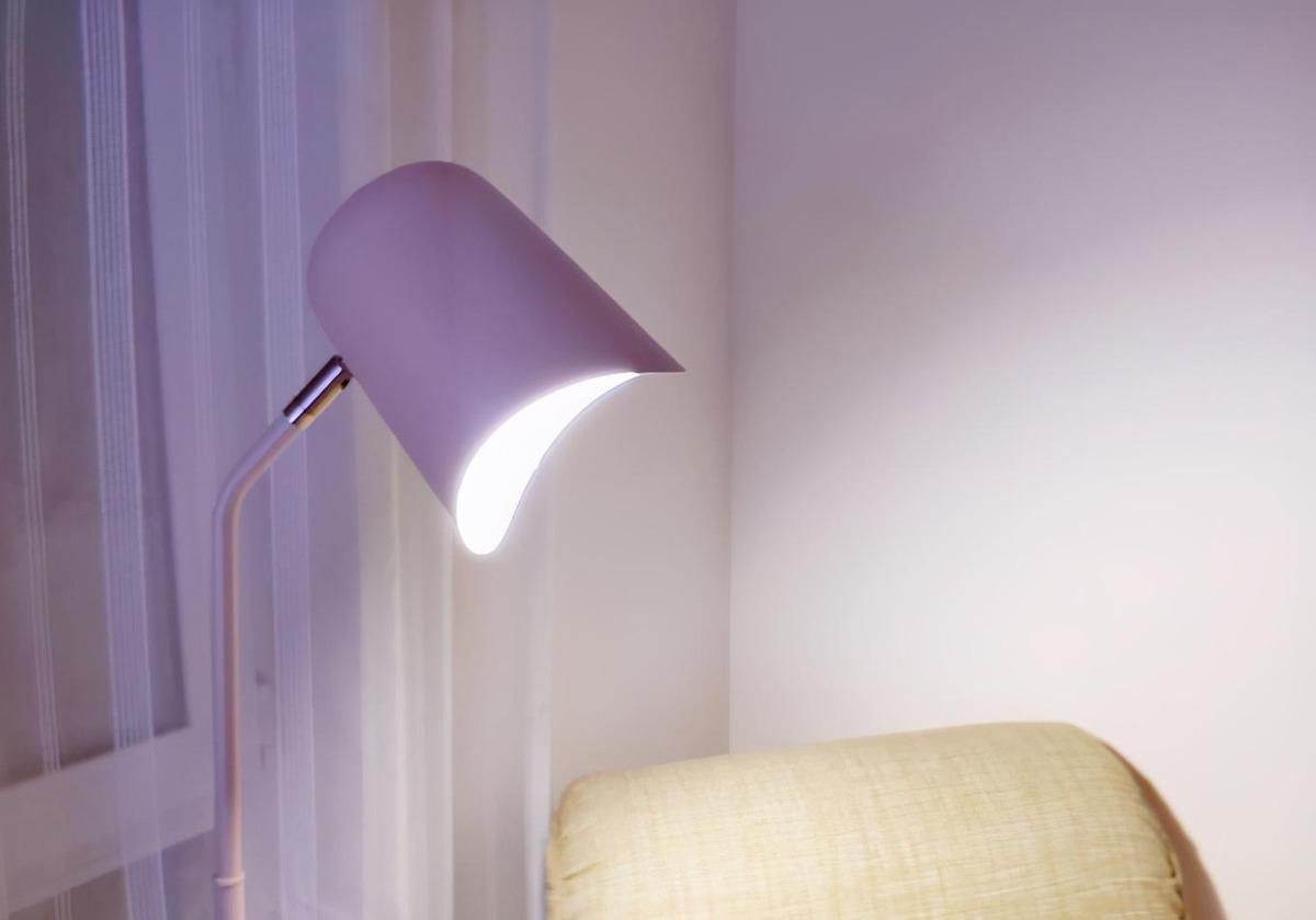 极简外型的粉色彩落地灯与米色写做角也极为契合,夜间更实的生成一对,灯头更是能上下90°、摆布360°随心调理。