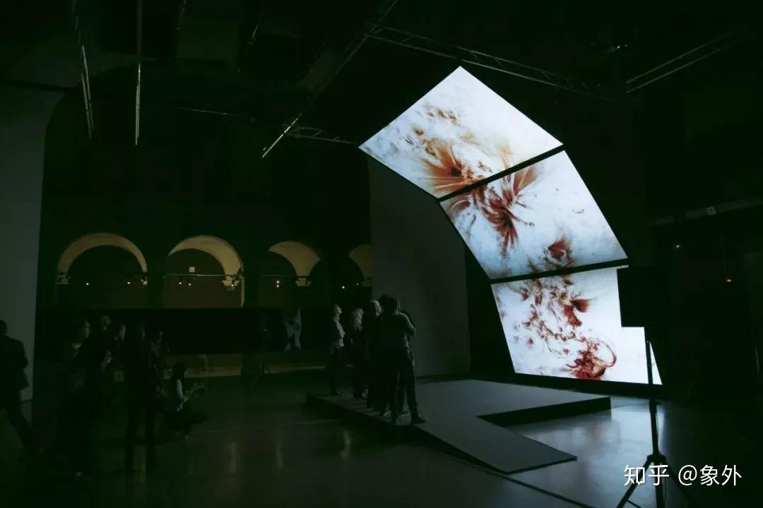 日本新媒体演出艺术家黑川良一在做品《反向折叠》中,将天文数据转化为声音和图像,在庞大的标准上重现了一颗恒星的降生。