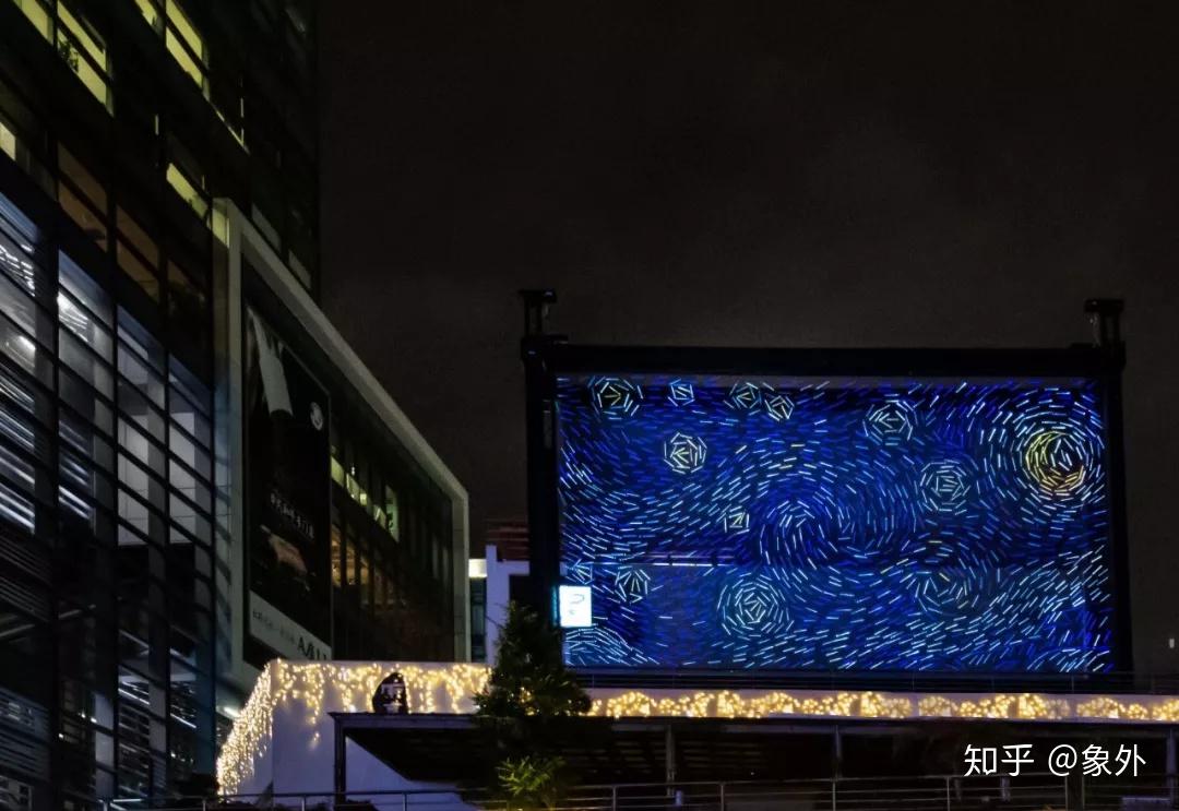 向梵·高致敬之做,用1400根发光的丙烯酸灯管替代了梵高的画笔,向我们呈现了一小我造版本的绚烂星空。