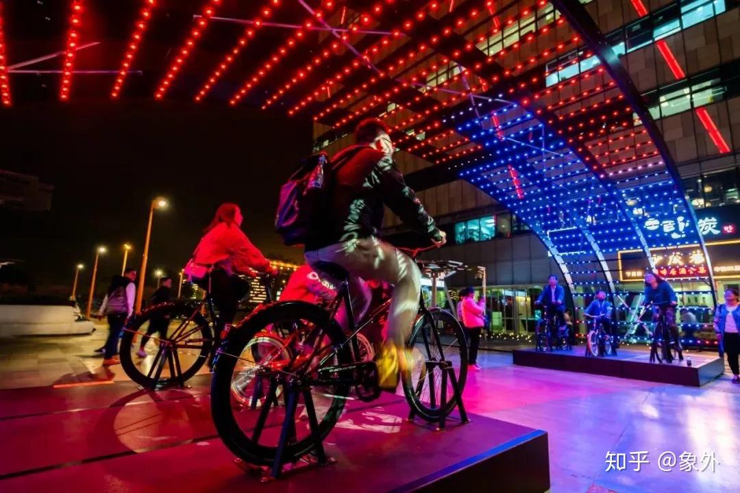 一个由近5000个LED灯构成的拱门安装,拱门两边各有三辆自行车,通过奋力踩动踏板,参赛者将本身那一方的的光束推到另一边,以击败敌手——一场光之战。