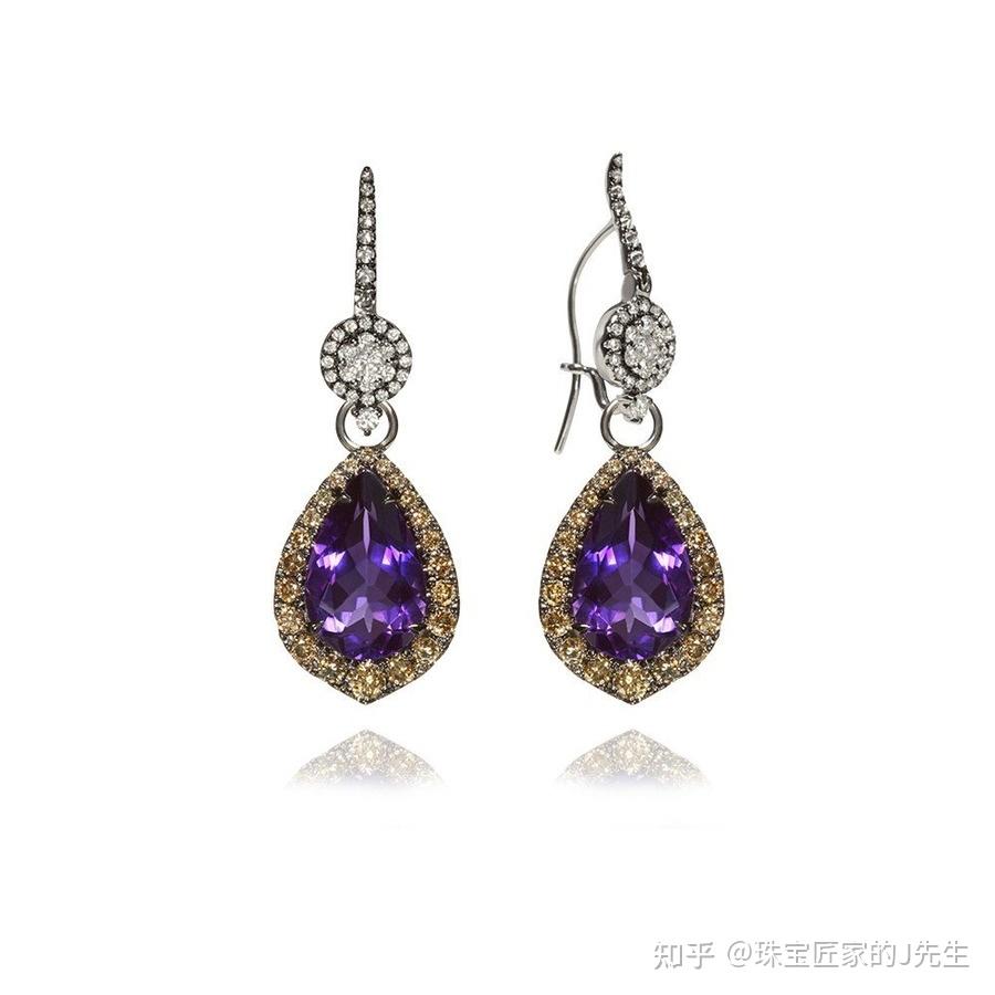 紫分离片耳环,by Wallace Chan紫分离片凭仗犹如多彩的的清纯色彩,在国际市场非常流行,颇受珠宝首饰明星的逃捧。