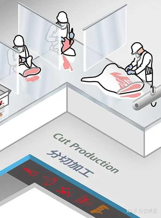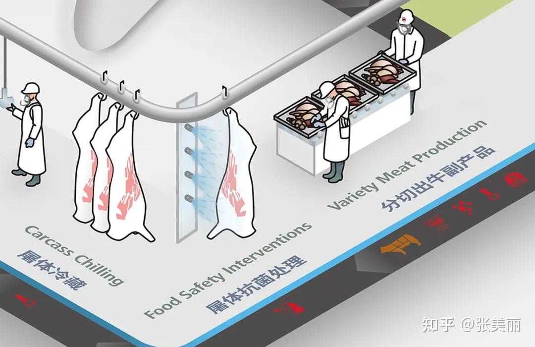 「屠体抗菌处置」➪「屠体冷藏」➪「屠体评级」➪「分切加工」➪「拆箱与贴标」➪