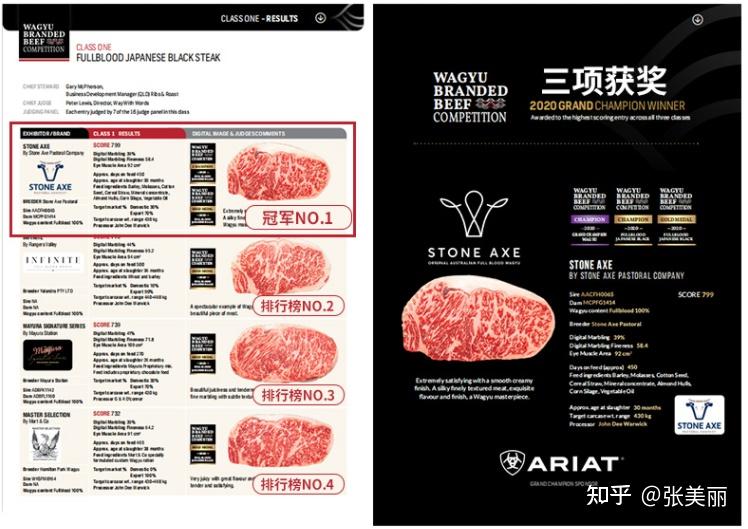 来自澳洲StoneAxe 100%纯血和牛(就是高级、贵的意思),谷饲600天,M9+级别,2020年世界牛排挑战赛(World Steak Challenge)冠军,丝绸般的细腻口感。
