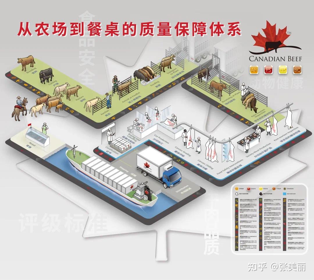 加拿大牛排饲养农场从牛只出生到餐桌上,由其量量保障系统,18个环节慎密相连,环环相扣,缺一不成。