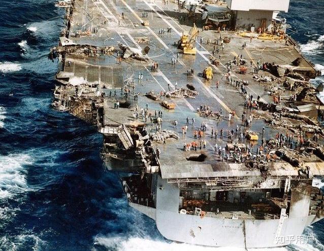(被炸得一片狼藉的企业号航母后船面)