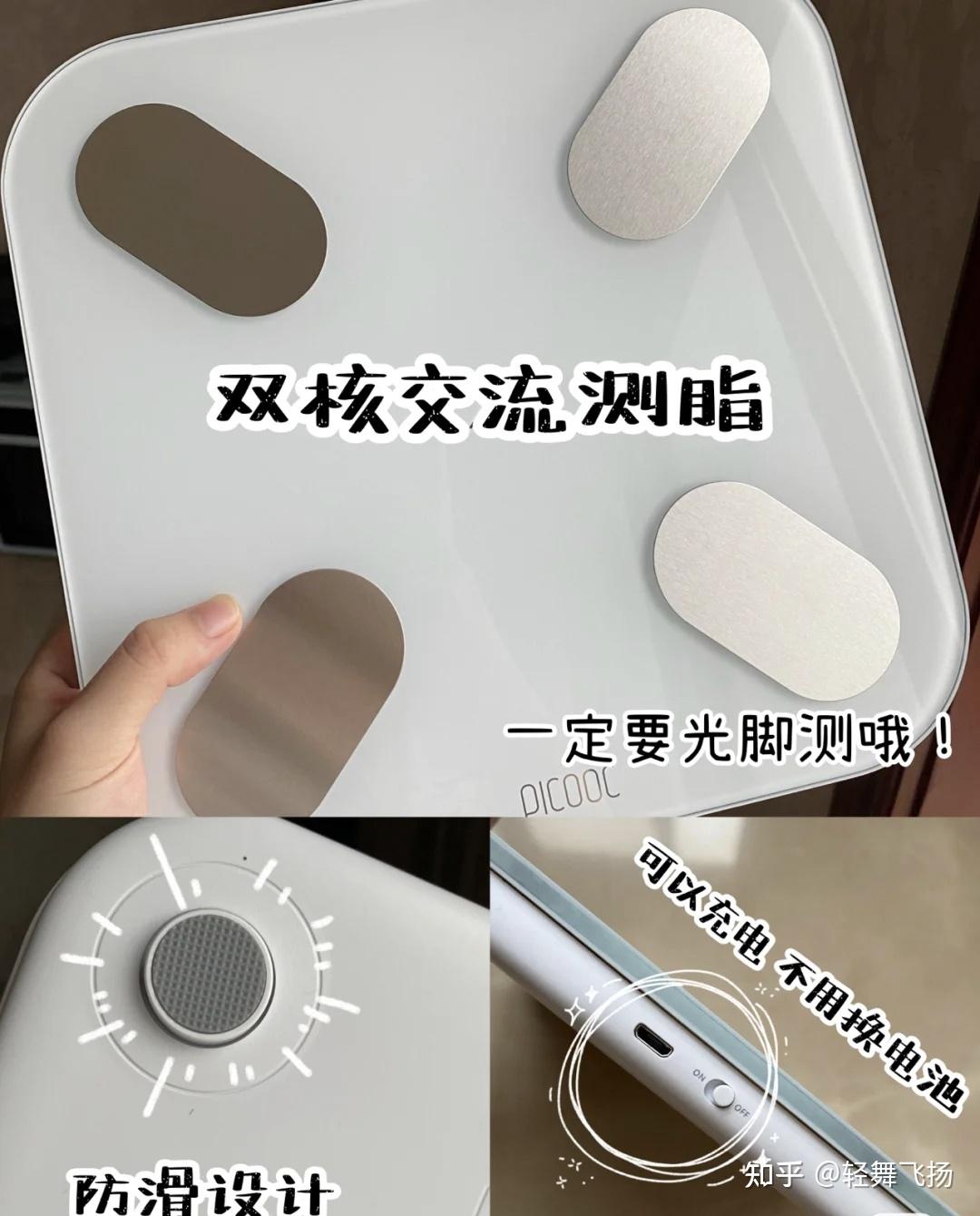 钢化玻璃秤面设想,象牙白色的外不雅+银色电极片连系,显得简约又时髦,后背还有防滑胶垫,细节很到位
