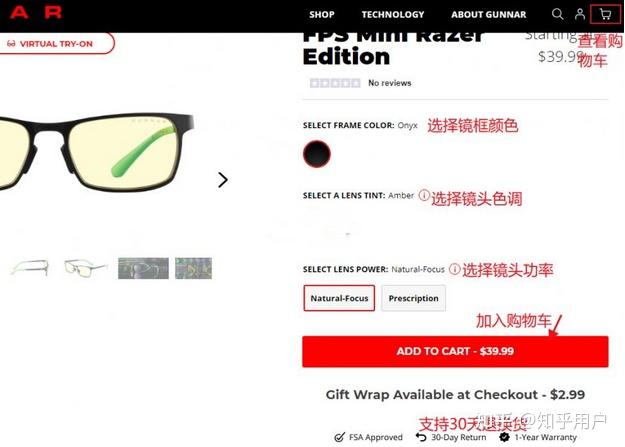 3、那时能在GUNNAR英国官方中文网站 *** 了,选择-款隐形眼镜点选ADD TO CART参加科季夫,左上角可步入查阅科季夫。