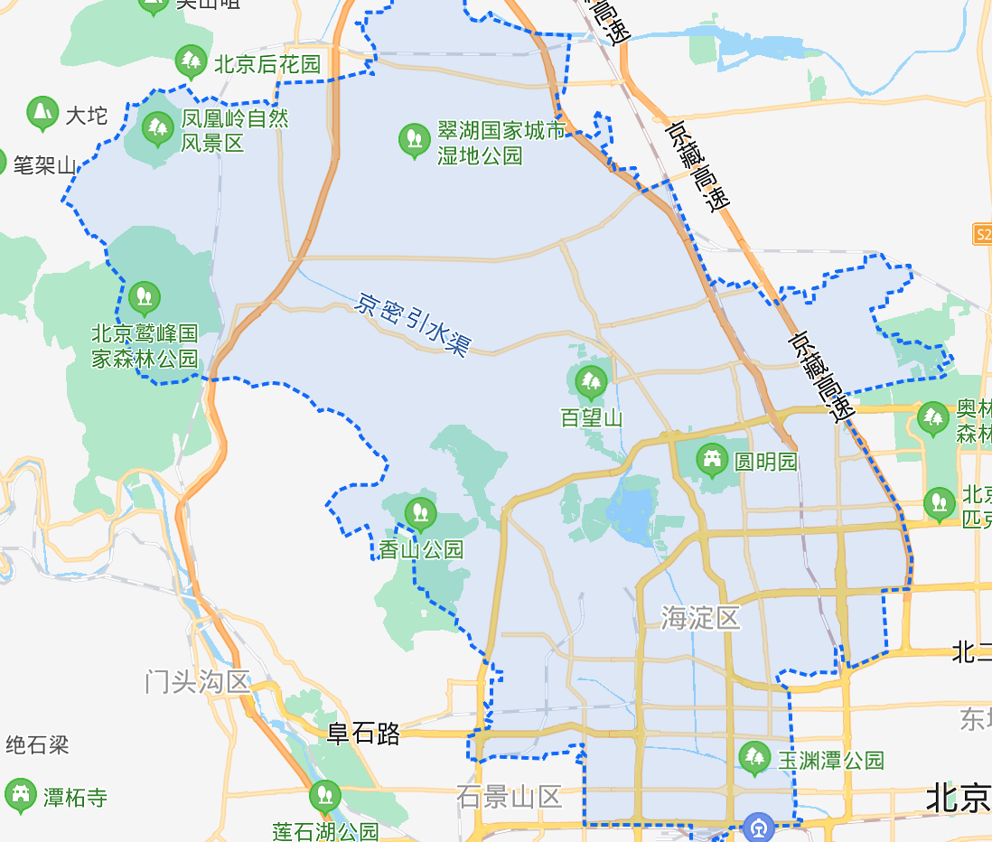 玉泉路分离隔了海淀和石景山,北端遥望玉泉山。