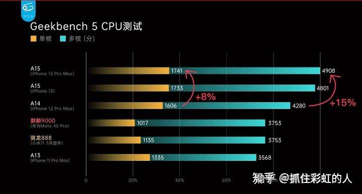 iphone 13 pro比iphone 13性能更长,利用寿命更长由下图跑分能够看出,满血版本的A15处置器比通俗版本的无论多核仍是单核性能都更好。