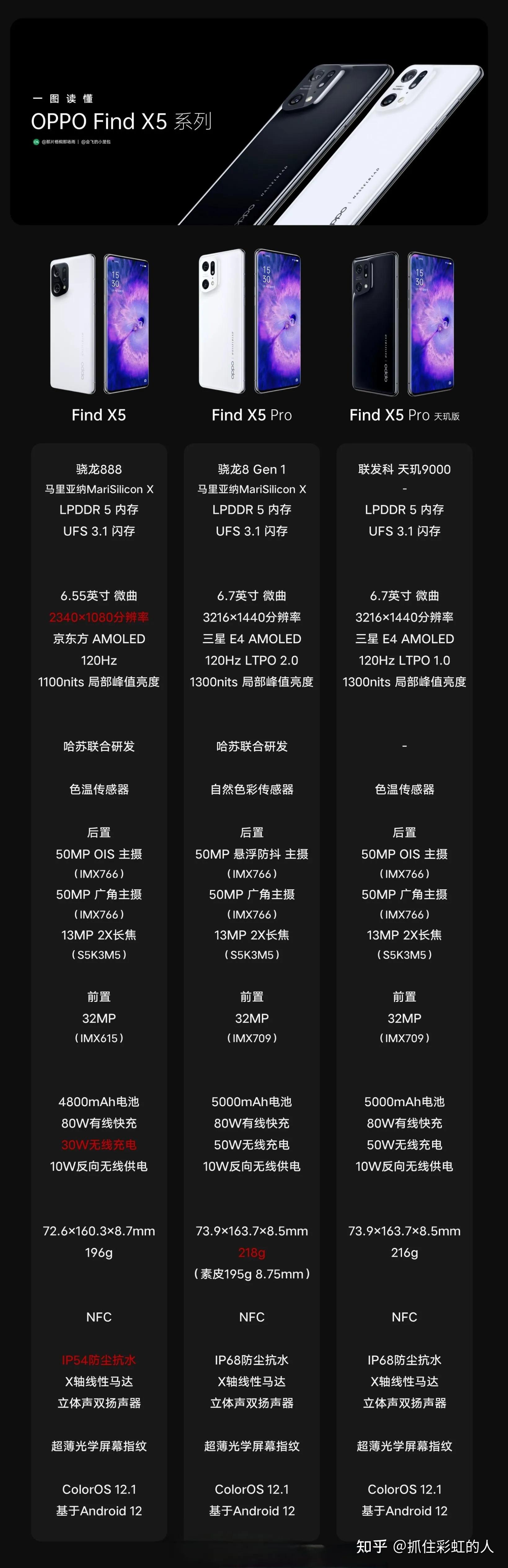 OPPO Find X5以及X5 Pro系列,摄影实力超卓,不敷是天玑版本的X5 Pro摄影一般,更合适游戏三款手机设置装备摆设比照如下: