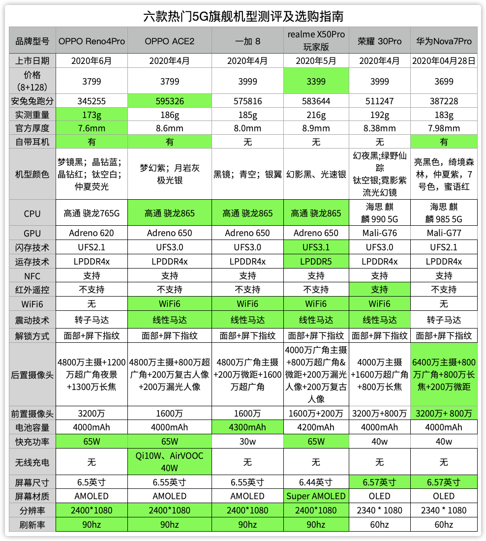OPPO Reno4 Pro、OPPO ACE 2、N80H58Vconeplus 8、realmeX 50Pro玩家版、王者HONOR 30 Pro、宏碁HUAWEI nova 7Pro选购指南及对照评定ing。