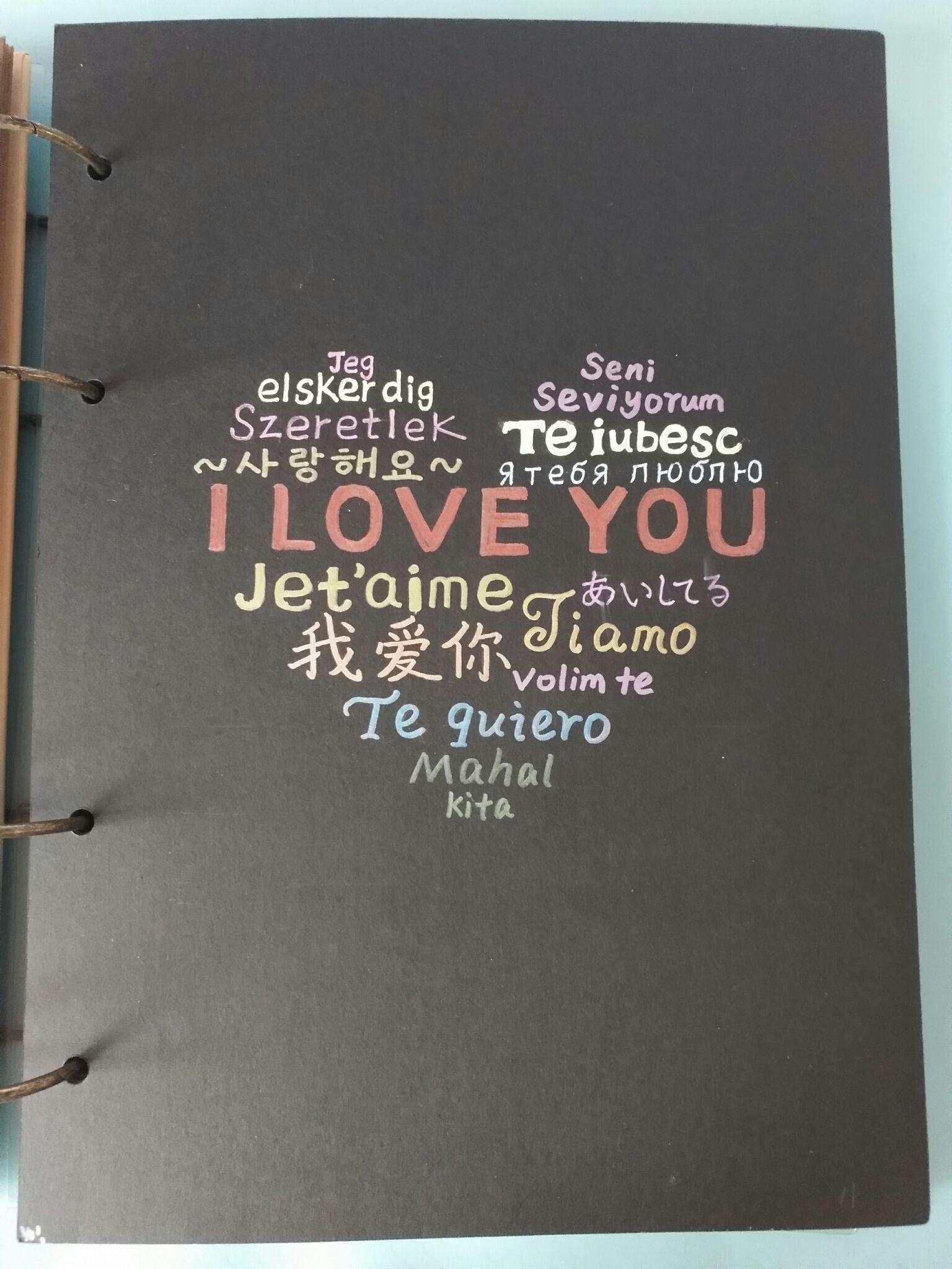 “我爱你”阿谁心也是先画一个大致的位置,再勾画轮廓。关于文字,我是在word文档上打出字母,再选择差别的字体,照着画的。