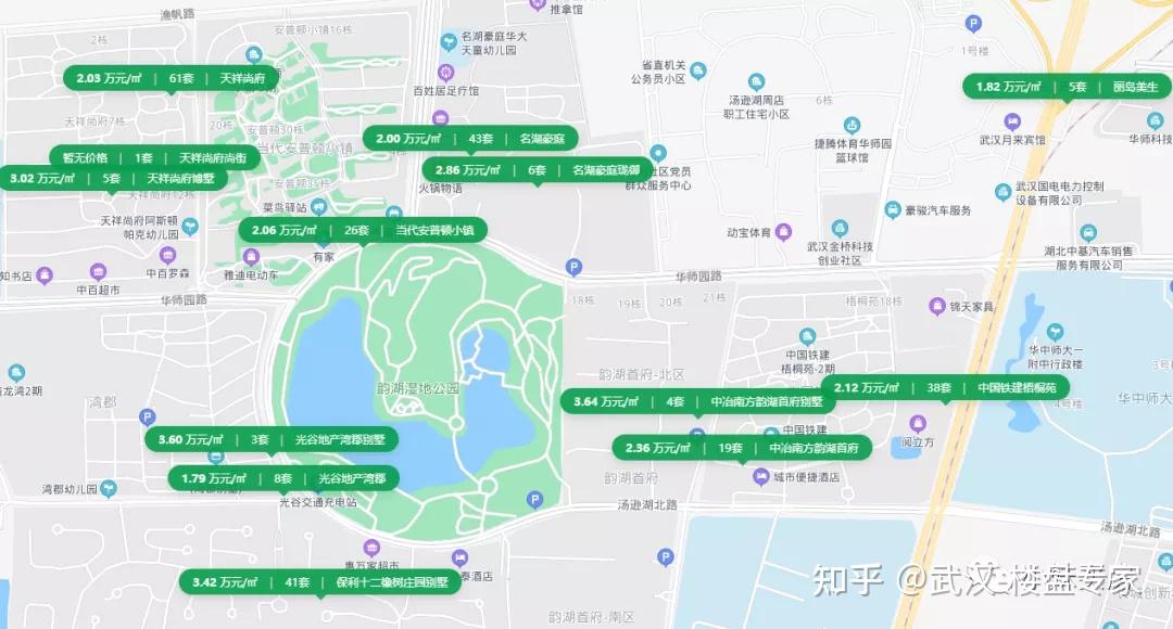 2、工程项目靠近韵湖公园,下楼逛逛能够,可是因为临近都是高层建筑,看湖视野会有所阻挠,亲湖性一般。