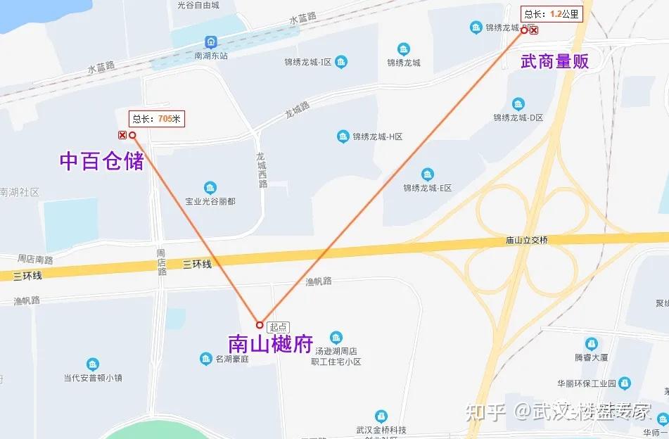 若是要去大一点的超市,比力近的有隔邻写字楼小区锦绣龙城的中百仓储、武筹议贩,别离相距705米和1.2米,都是步行可达的距。