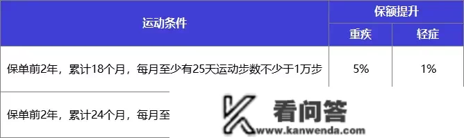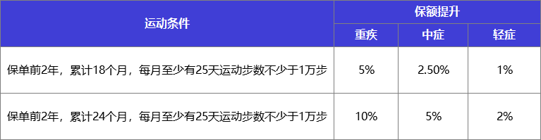 只要运动达标,重疾、中症、轻症保额都能另行增加。