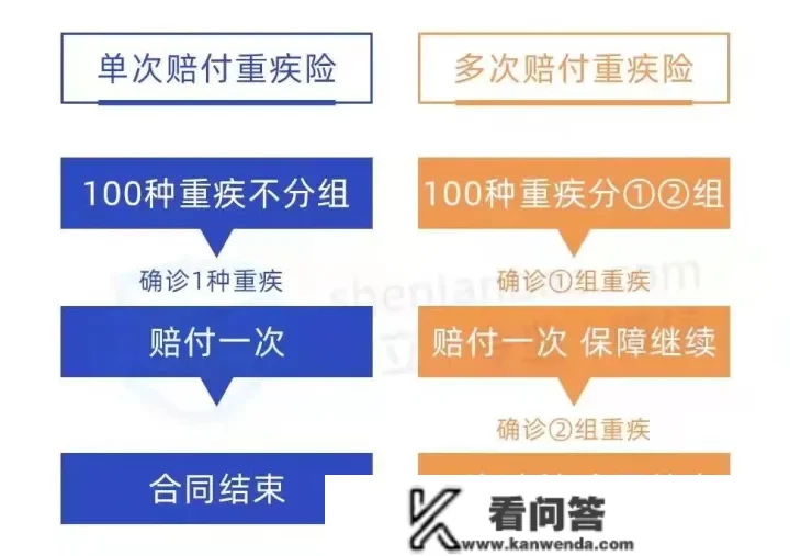 再看赔付次数,重疾险有单次赔付、屡次赔付两大类。