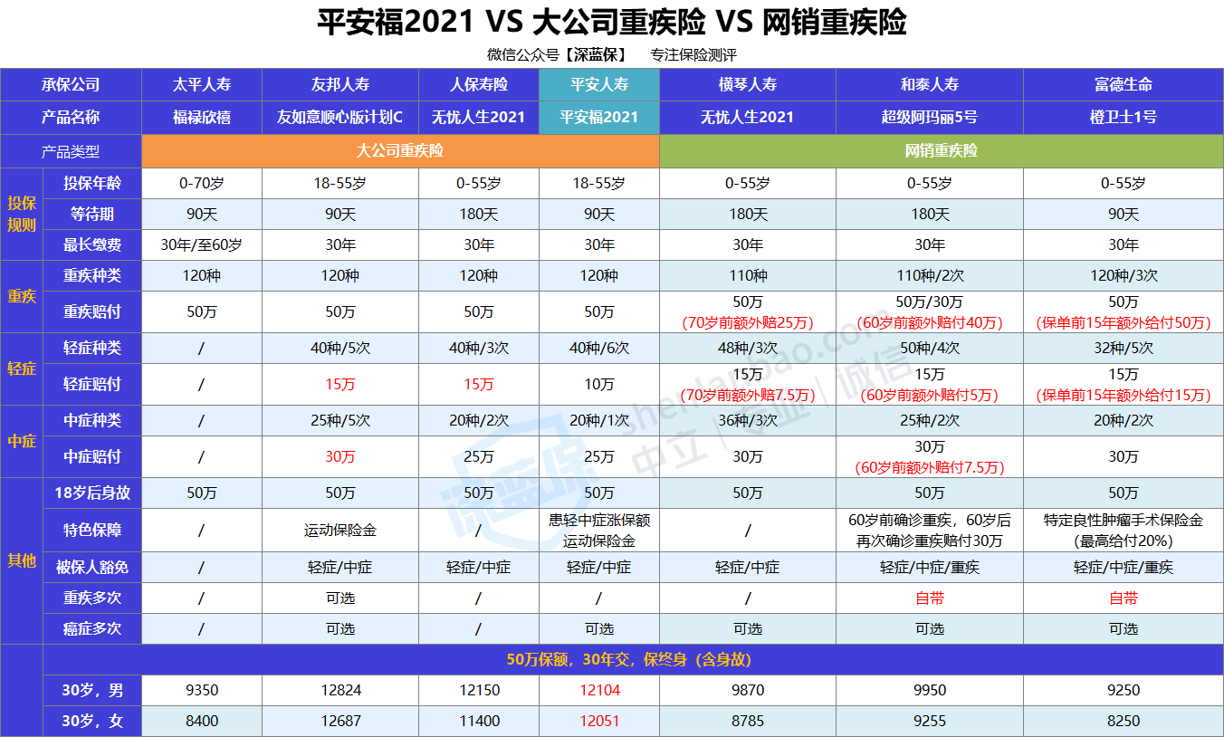 为了找出安然福值不值得买的谜底,我与大公司产物和网销产物都做了比照: