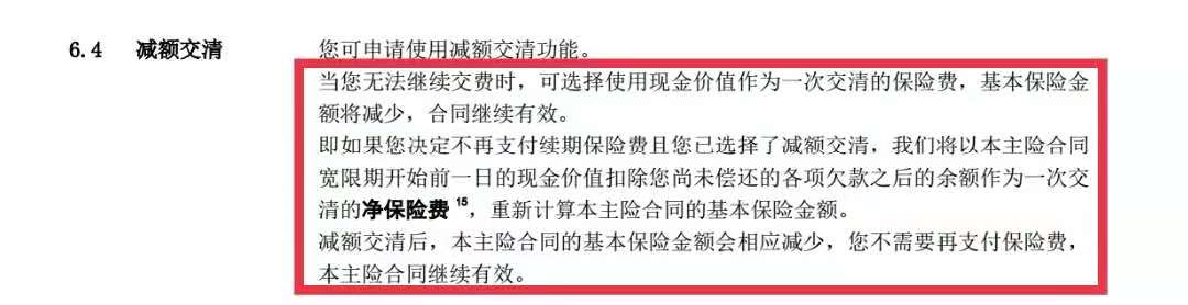 意思就是 拿其时的现金价值充任以后的保费,保障照旧有效,保额会响应削减。