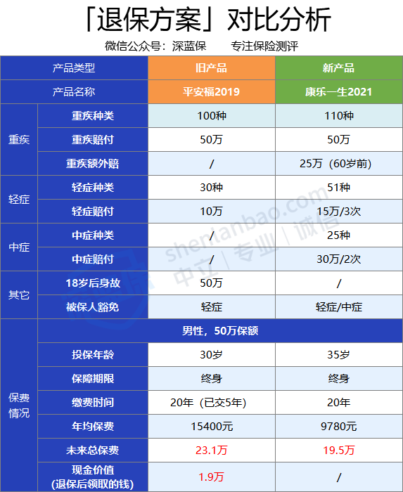 并且比照旧产物,新产物有以下优势:保障更好:重疾保额在65岁之前能够额外赔付50%;多了中症保障,轻症赔付比例比旧产物高了 10%,且轻中症都能赔 2 - 3 次,病种数量也更多。价格更廉价:即使年龄大了,每年保费仍是廉价了一些。将来的总保费也比旧产物剩下没交的保费要少。当然了,也不克不及单纯考虑价格,还要考虑新旧重疾的因素,好比: