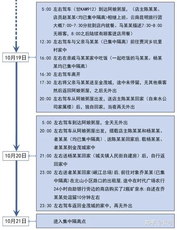 10月21日7:40摆布从家动身乘坐136路公交去单元取工具,待至12:00摆布,后其丈夫驾车接回家,下战书和老公一路驾车去东立奥特莱斯广场列队做核酸检测未果,随后驾车前去培黎广场社区做核酸检测,检测完毕后驾车回家,再无外出。