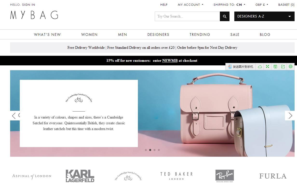 THE HUT Group母公司的my bag,网址是http://www.mybag.com/,次要是保举给那些厌恶爱尔兰包的人↓