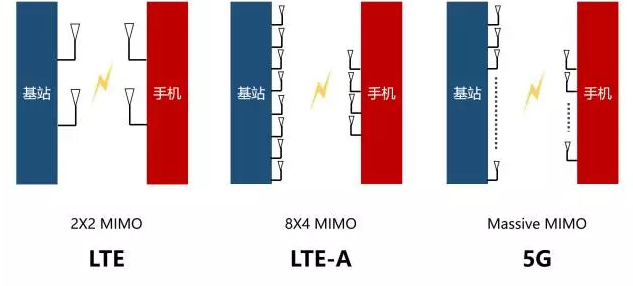 在LTE时代就已经有MIMO了,5G继续发扬光大,酿成了加强版的Massive MIMO(Massive:大规模的,大量的)。