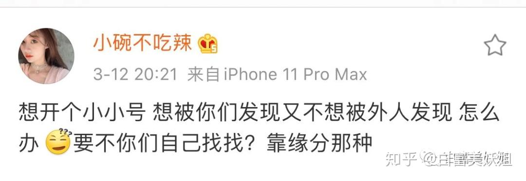 小号翻车前不久婉约在小号说想开小小号,想被粉丝发现又不想被外人发现: