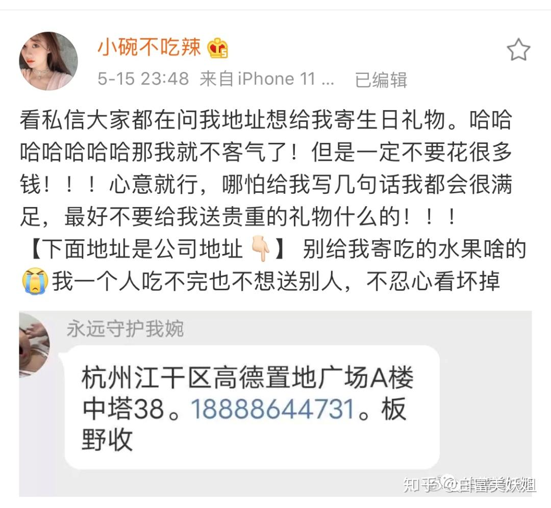 婉约关于生日的骚操做还不行如斯,她在博客上间接把公司的地址放出来说“我们都想给我寄礼品,那就把地址发出来吧,切记生果不要,贵重物品不要”。
