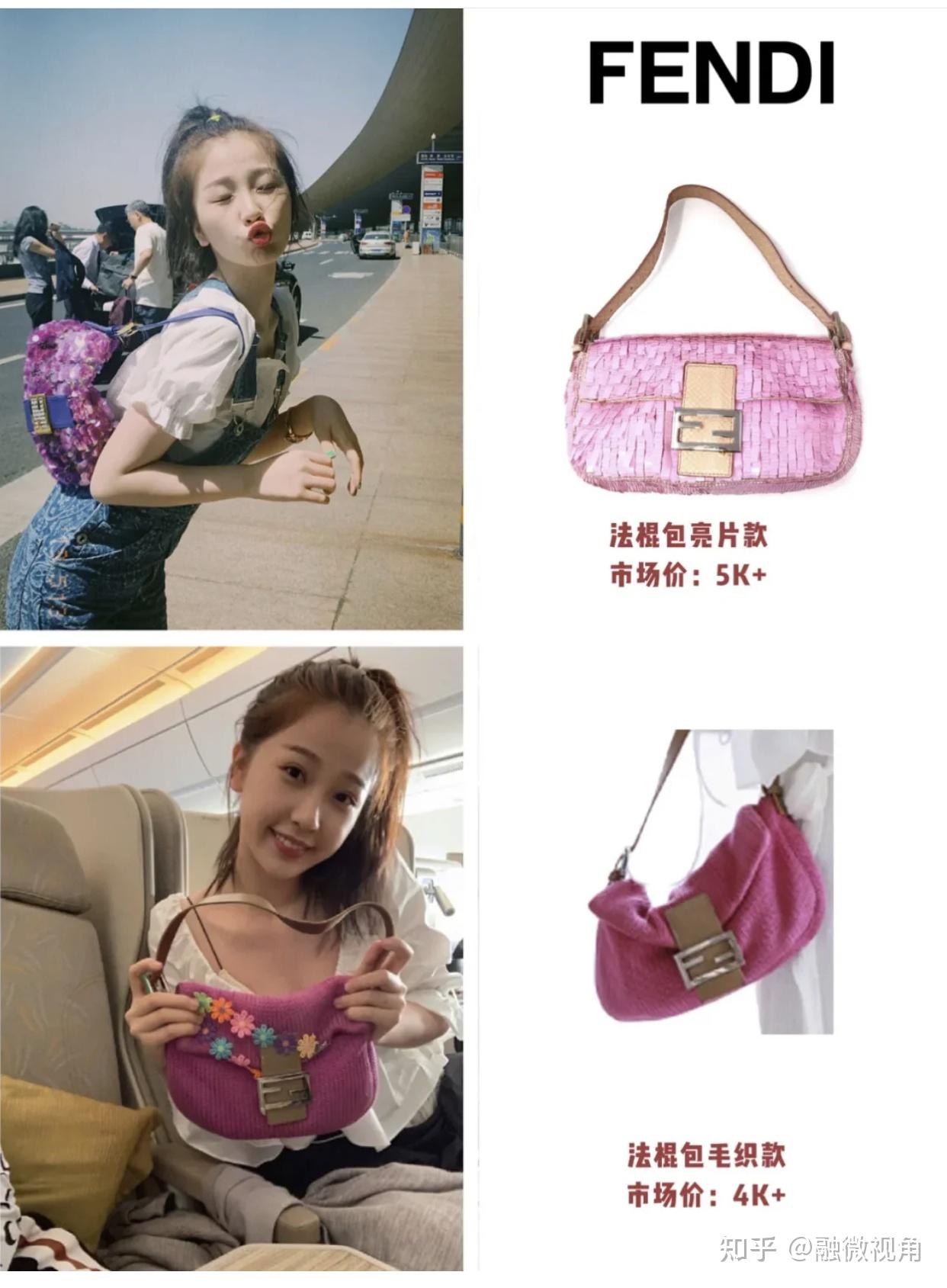 光是Fendi法棍包,她就集齐了珠片版、白色漆皮版、针织布款,在各类场所均可配搭,和她的小心爱、甜妹气概还挺配搭的。